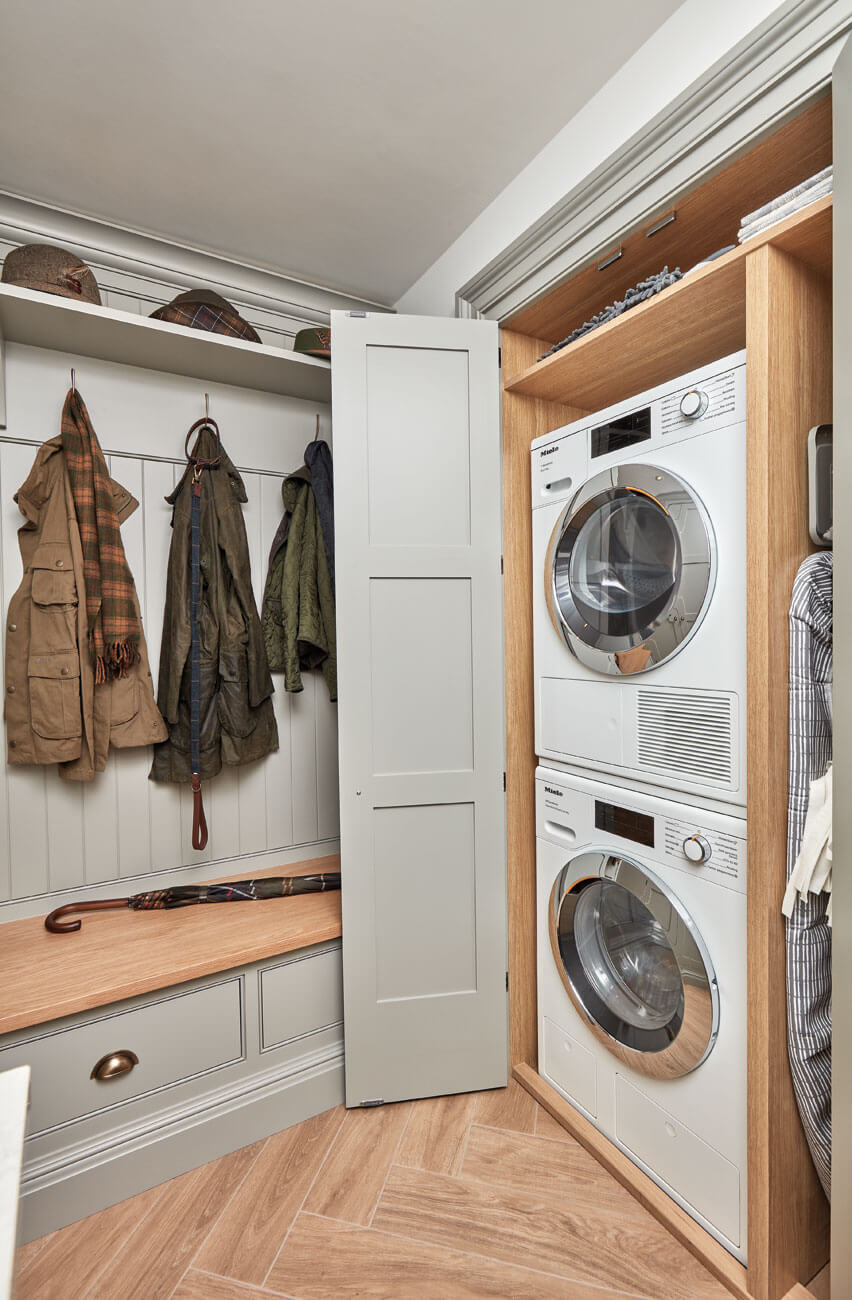 Busy lifestyles can be challenging. Work, leisure, and family life have never been more demanding meaning any help we can get to make things easier can come as a welcome relief. The so-called engine room of the home is deserving of its name. A well designed utility room can include a washing machine, tumble dryer, sink, a place to store clothes maidens, the ironing board and iron, extra storage for shoes and even additional pantry space.