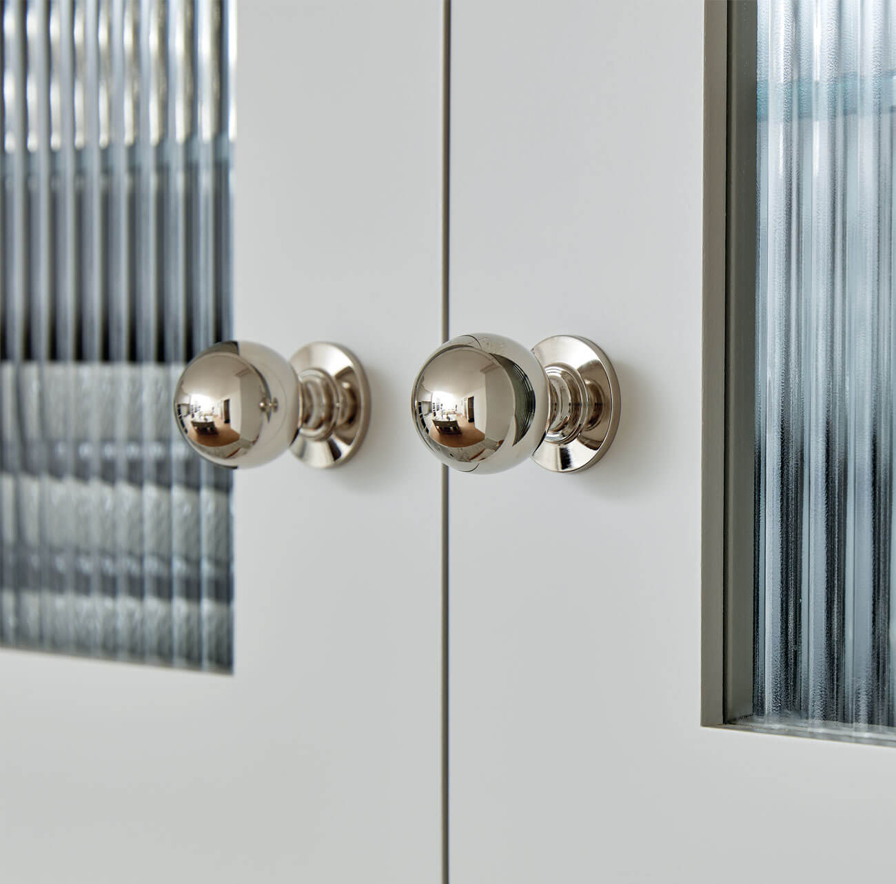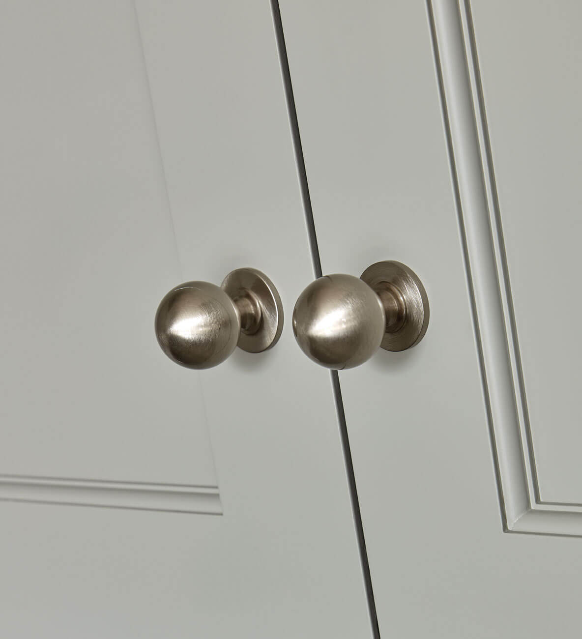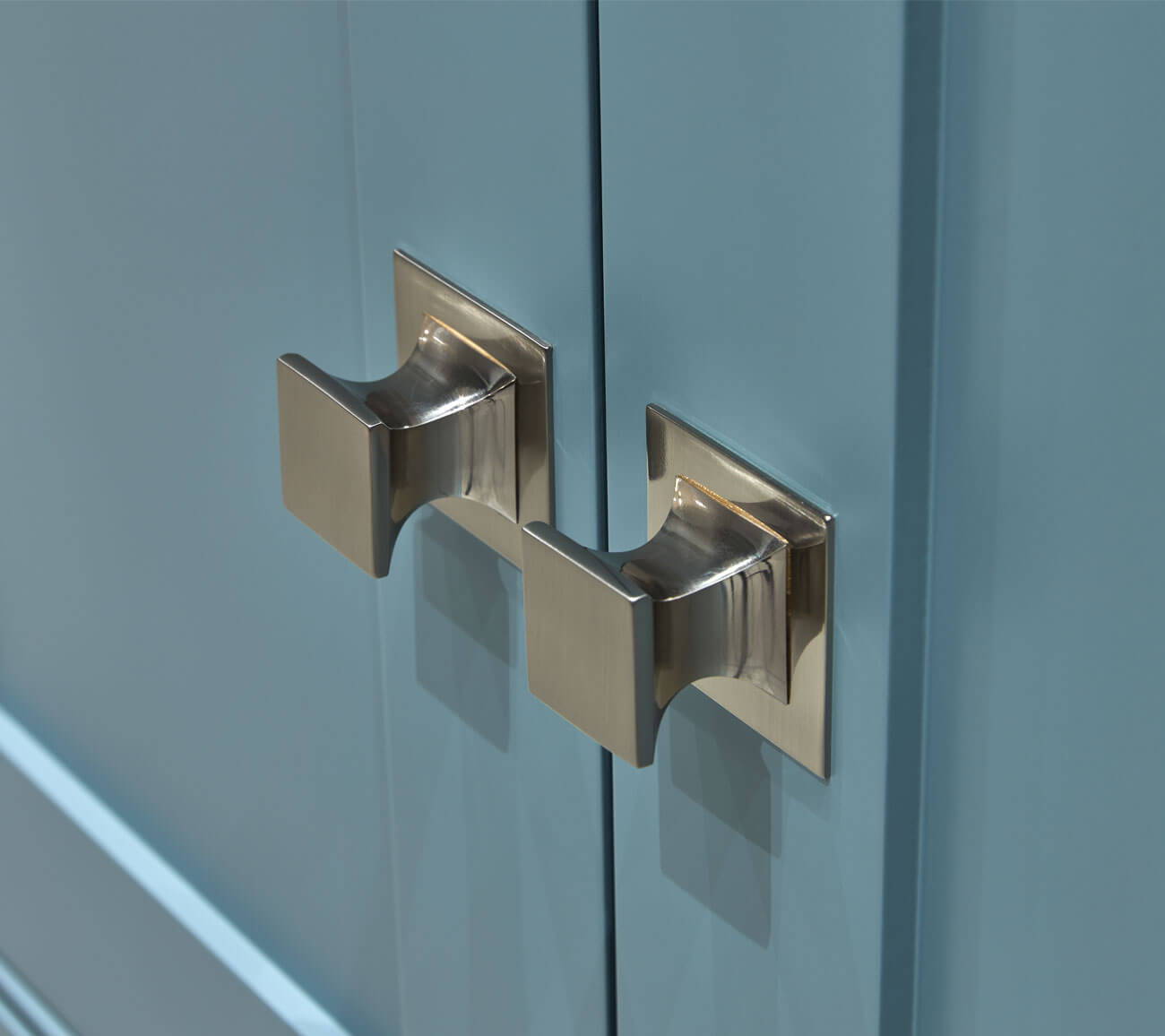 Our exquisite handles can be finished in polished nickel, satin nickel, polished chrome, antique brass, matt gold or matt black, allowing you to match your handles to taps and other elements in your kitchen design. We don’t just stop at helping you select the perfect kitchen door handles to complement your design, everything from finial ends to matching door hinges is considered to complete the overall look.
