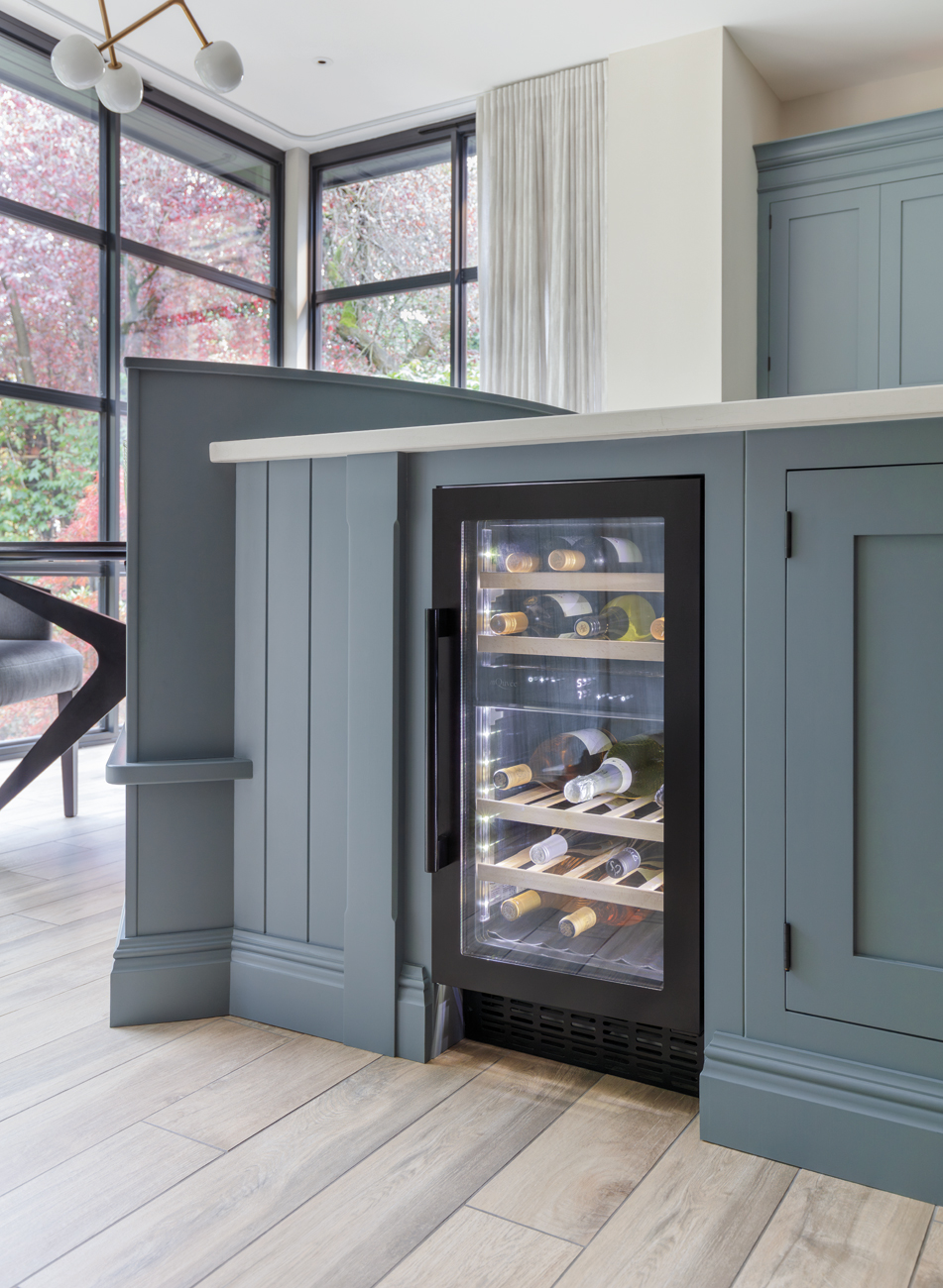 No luxury kitchen is complete without state-of-the-art appliances; this space was no exception. Effortless cooking is made possible with a Bertazzoni range cooker and Westin extractor, which seamlessly integrate into the space. A built-in fridge-freezer also provides ample space for a family’s weekly shop, ensuring everything is close at hand when needed.