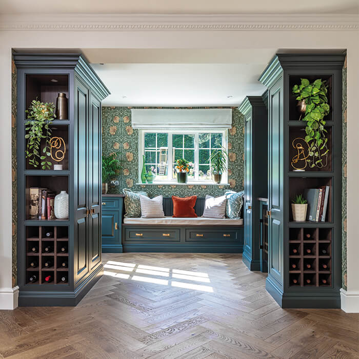 This bespoke snug and bar area is the perfect spot for relaxation and entertaining. Luxurious and practical it creates a stylish and sophisticated sanctuary for memorable moments.